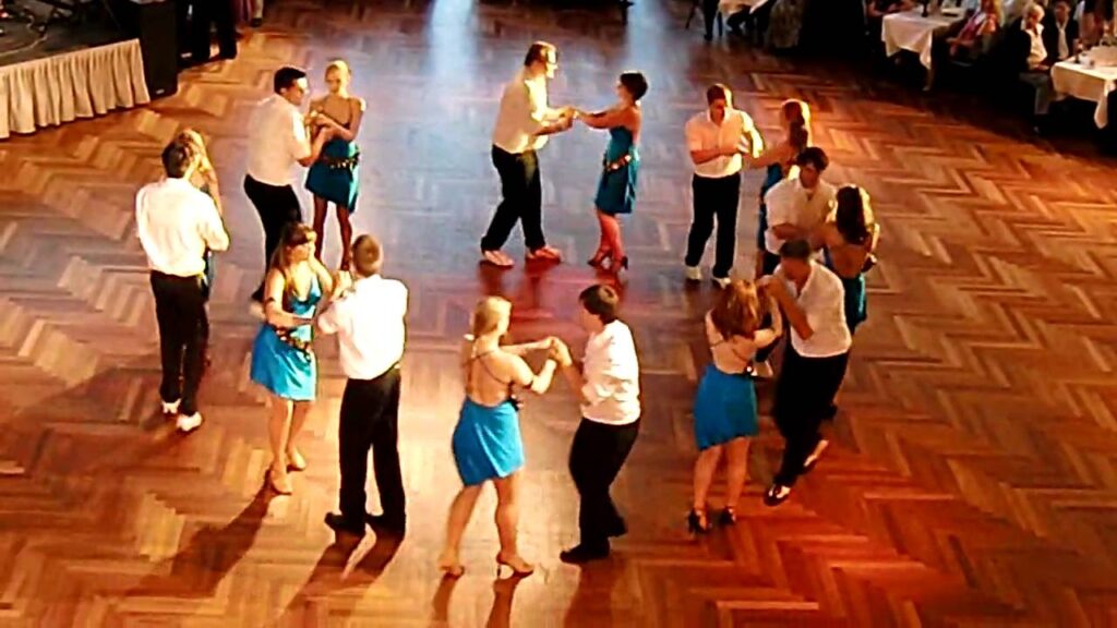 Rueda de casino is a circle of couples dancing Cuban salsa figures, to the commands of a caller in the circle.